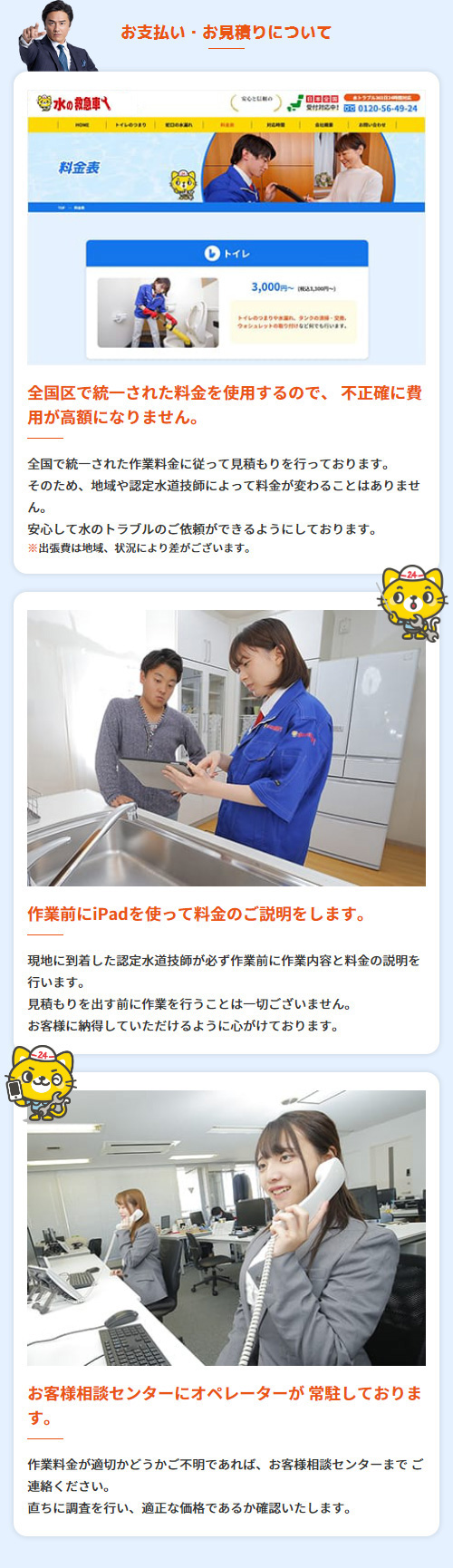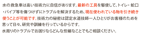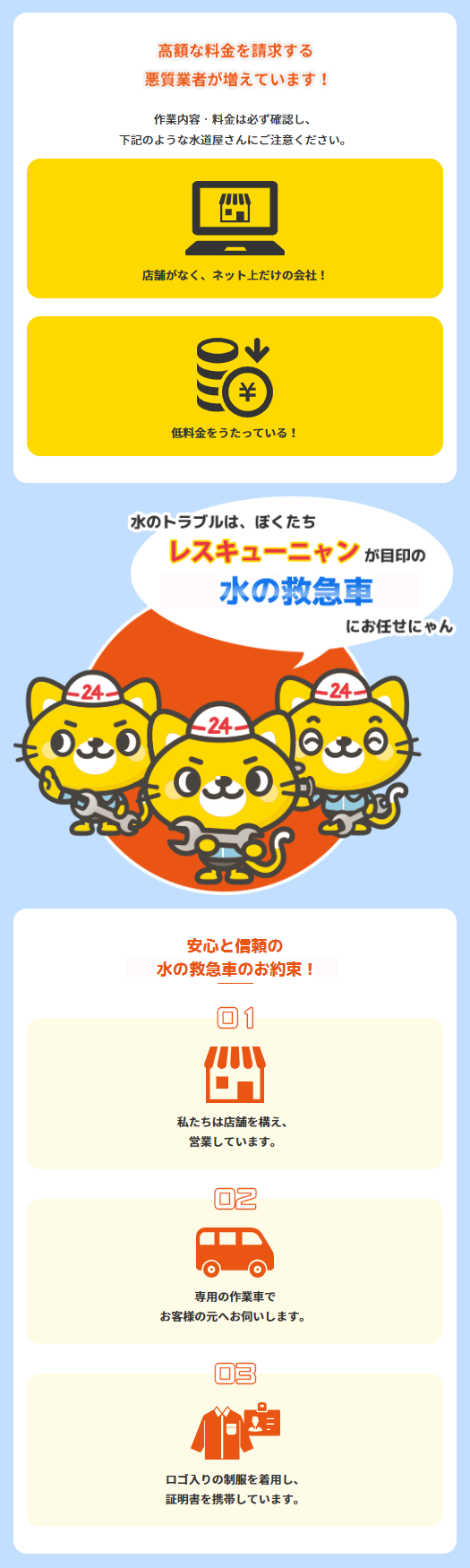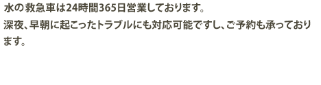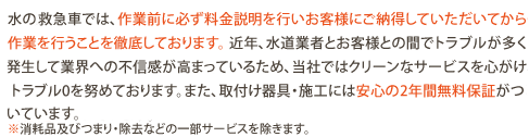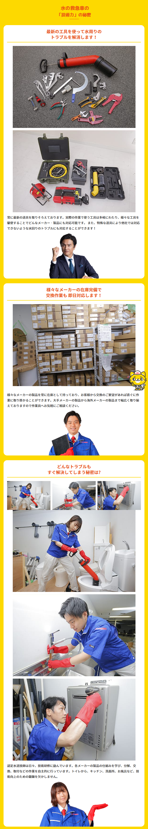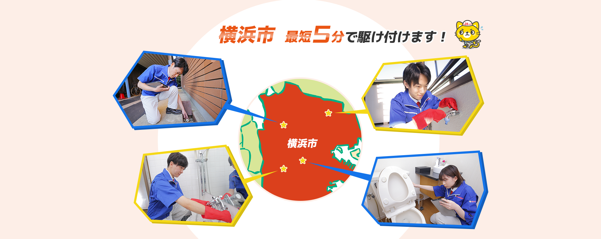 横浜の水道トラブルは『水の救急車横浜店』がすぐに解決します。みなとみらいや横浜中華街のエリアでも、365日24時間体制で最短5分で駆けつけ、2年保証と事前見積もりで確実に解決します。